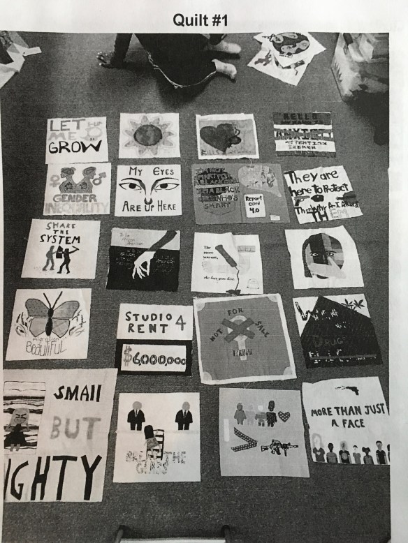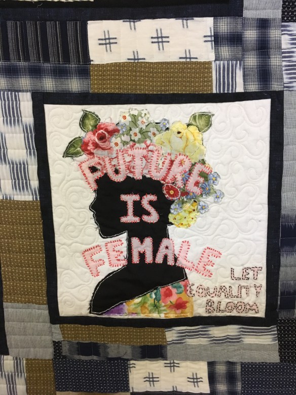 1. And I love that you believe the connection of social consciousness and art go together!!! Thank you for your appreciation. There are so many issues that need attending, and we humans are very diverse luckily!! I am so thankful to the students and Sara Trail who works with them, and all the women who embroider, stitch, cut, and Nancy Williams who donates her long arm quilting machine and time to bring it all together in her studio!!