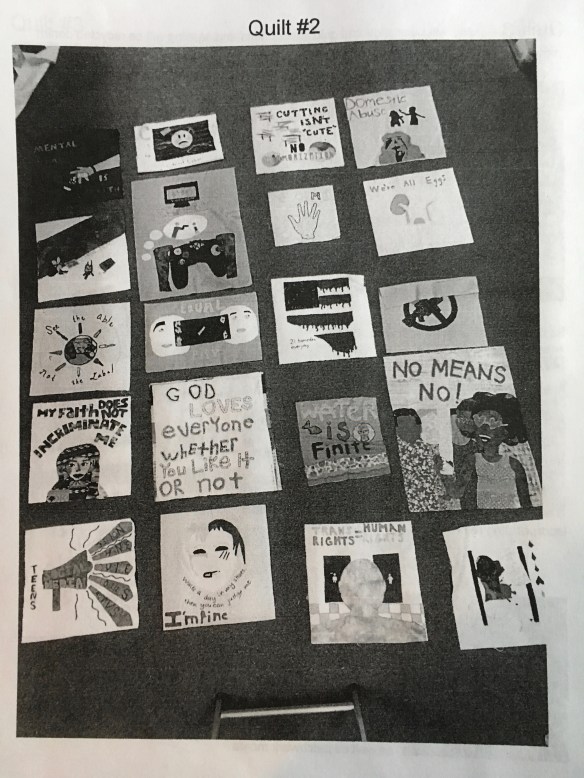 2. These are wonderful and so inspiring! Thanks for featuring some of the squares, close-up. Art and social consciousness go hand in hand – I love it that you work with student youth on these projects.